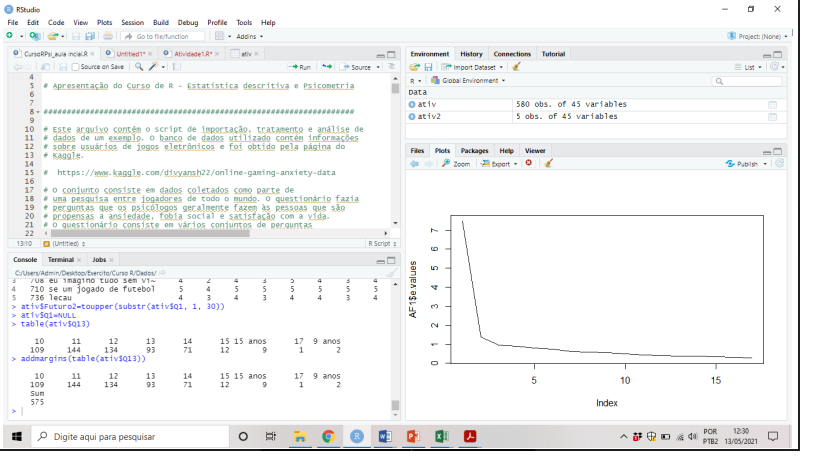 Fiz o curso de estatística no Software R – linguagem de programação estatística para análise de dados, promovido pelo Centro de Pesquisa em Avaliação e Tecnologias sociais – CEPATS, com o professor Luis Gustavo Vinha da Universidade de Brasília – UnB. Nesse curso, aprendemos sobre o R studio, tratamento de dados, análises descritivas, correlação e...